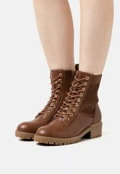 - Bottines à lacets en cuir véritable de couleur cognac, parfaites pour l’hiver.